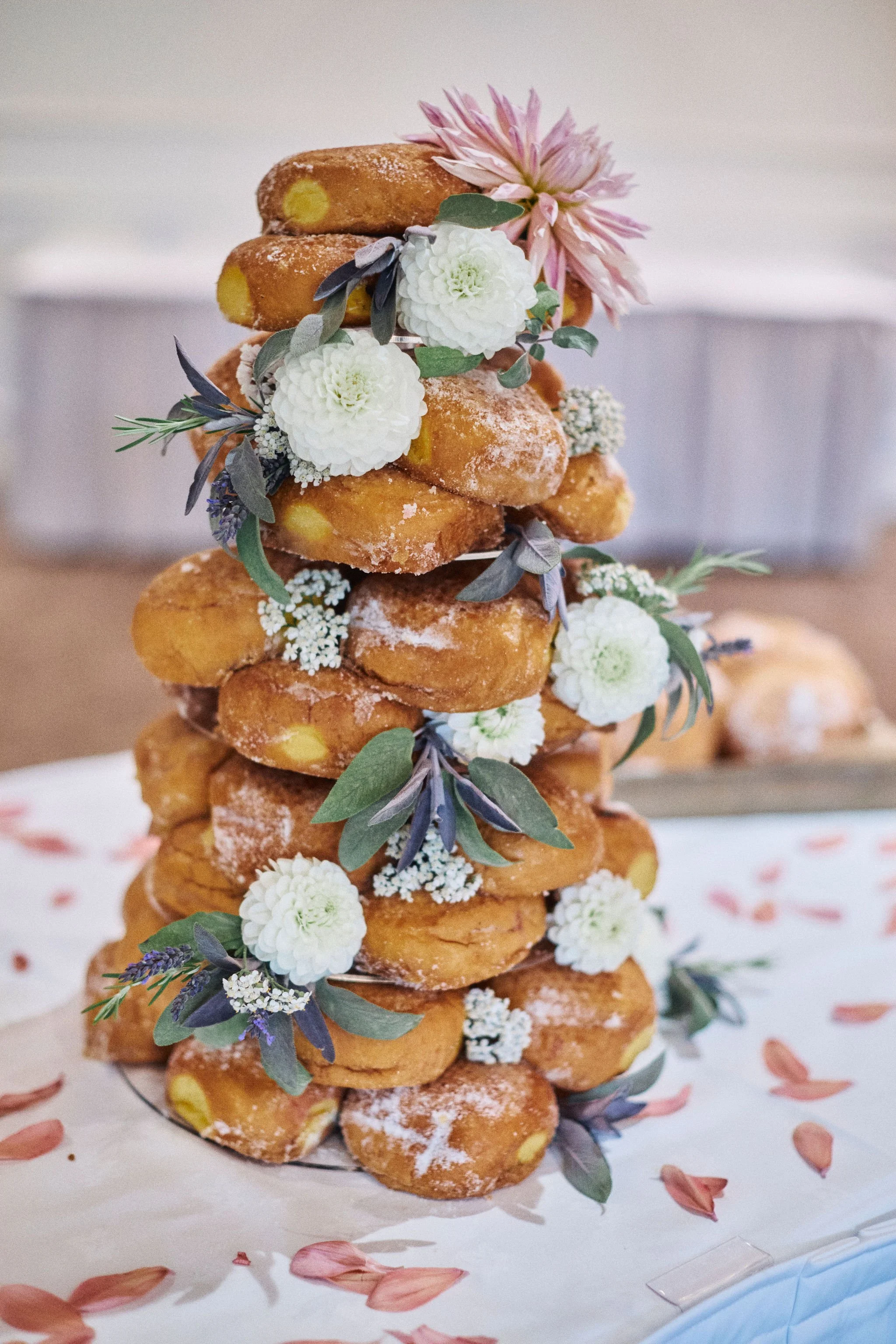 Inside the hotel, Bonita Events had put together a brilliant setup for the reception. There was a thoughtful soft play space for kids, which was a big hit, and tables decorated with personal touches. Instead of a traditional cake, Katie and Aaron went for a doughnut tower from Senners Bakery, which looked fantastic and disappeared fast.